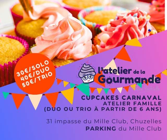 Atelier CUPCAKES CARNAVAL , mardi 17 février, Chuzelles